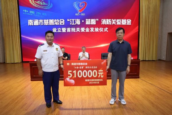 南通市慈善总会“江海∙蓝馨”消防关爱基金由南通市消防救援支队发起设立,旨在加强对消防救援人员及政府专职消防员中家庭遭遇困难的人员以及因灾致困特定人群的关爱帮扶,同时,对广大人民群众、社会救援力量在人民群众生命财产安全受到灾难威胁的关头挺身而出贡献突出的予以激励,进一步凝聚社会责任共识,夯实全民消防理念,构建文明和谐社会。