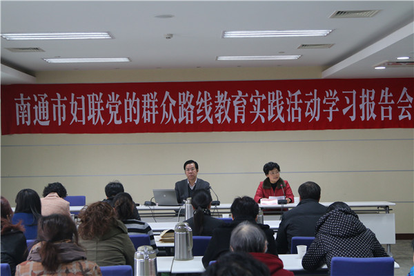 根据市委党的群众路线教育实践活动的部署要求,3月7日下午,市妇联召开党的群众路线教育实践活动学习报告会。会上,邀请市政协副秘书长叶沈良作了题为《中国文化与领袖风范》的辅导讲座。他以生动的事例、幽默的语言,围绕“朴实语词、生动语汇、犀利语义、丰富语境、清新语体、美丽语句”等六个方面,系统阐述了习近平总书记的讲话风格与语言魅力,为参会人员全面把握当前形势,领会习总书记系列重要讲话精神,学习用朴素平实的语言说话写文章,提供了形象生动的辅导。