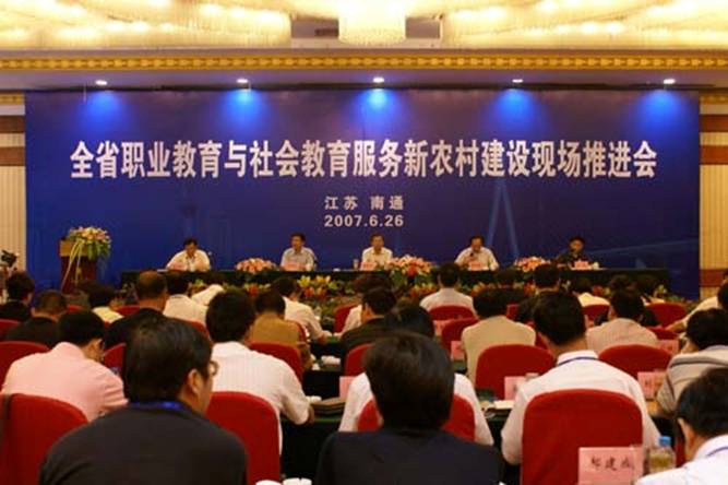 2007年6月26日,全省职业教育与社会教育服务新农村建设现场推进会在我市开幕。省教育厅副厅长殷翔文,厅副巡视员李世恺和省委宣传部、省委农工办、扶贫办、省委研究室、省政府研究室、省农林厅、省财政厅、省劳动和社会保障厅、省文化厅、团省委等相关单位职能处室负责人以及来自全省各市教育局分管局长、职社处处长、各县(市、区)教育局长,部分职业学校校长、成人学校校长、社区教育机构负责人等220多人参加了会议。 会议由省教育厅职业教育与社会教育处处长马斌主持。