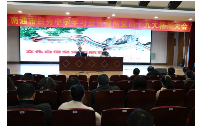 12 月13日,我校特邀市委宣讲团成员叶沈良同志作党的十九大会议精神宣讲,活动由党委书记缪应锋主持,启秀中学及启秀市北学校的全体教工参加。