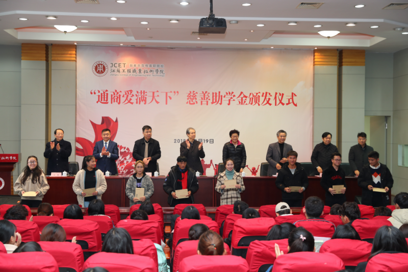 仪式上,王勇宣读了“通商爱满天下”慈善助学金受助学生名单。我校70名品学兼优、家境贫困的学生分别领取了1千元助学金。学生张琪代表获助学生对“通商爱满天下”慈善基金捐资者们的爱心表达了最真挚的感谢之情,并承诺将会努力学习,饮水思源,以优异的成绩和良好的责任担当回馈社会。陈惠发言表示,希望同学们在南通能够努力学习,掌握一定的技术,了解社会和未来,也欢迎广大同学加入通商企业,一起发展和建设我们未来的社会,真正共同实现我们的中国梦。