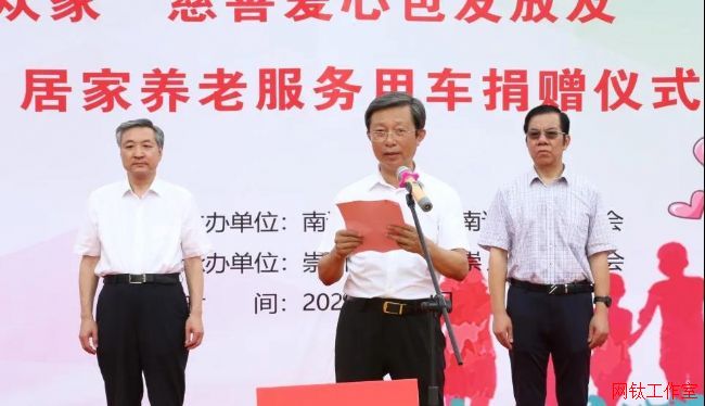 市新开街道党工委委员、纪工委书记郑旭代表受赠街道发言,他表示,“慈映夕阳”居家养老服务用车进一步推动了“机构+社区+居家”养老服务工作的持续深入,将经济发展成果更多惠及老年群体。