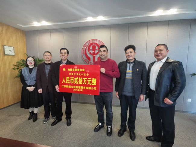 3月2日下午,江苏静通市容管理服务有限公司董事长顾雪飞、总经理张守鲲、总教官江杭军、海门区退役军人管理局办公室主任陆锡兵一行来到市慈善总会,捐资成立“静通市容爱心基金”。市慈善总会举行了基金成立仪式,副会长叶沈良、市民政局办公室主任娄为民、市慈善总会副秘书长夏丽梅、陈宣伊出席基金成立仪式。