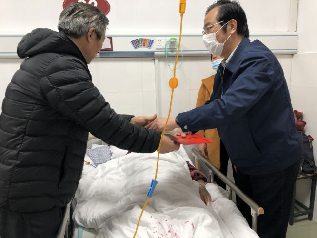 在病房中,叶沈良副会长关切地询问了钱淑英老人的病情及后续治疗事宜,嘱咐老人好好休息、积极治疗,早日恢复健康,市慈善总会也将尽力提供帮助。钱淑英老人艰难的点头致意。随后,叶沈良副会长将1万元慈善慰问金送到家属胡振华手中。胡振华激动地说:“我父亲只是做了一点他认为该做的事情,市慈善总会却把我们一家始终放在心上。父亲在世时,每年来看望父亲;父亲去世后,逢年过节都来慰问我母亲。这次母亲入院,我们没有声张,但市慈善总会竟然第一时间赶来看望我母亲,作为子女,我们十分感动。”
